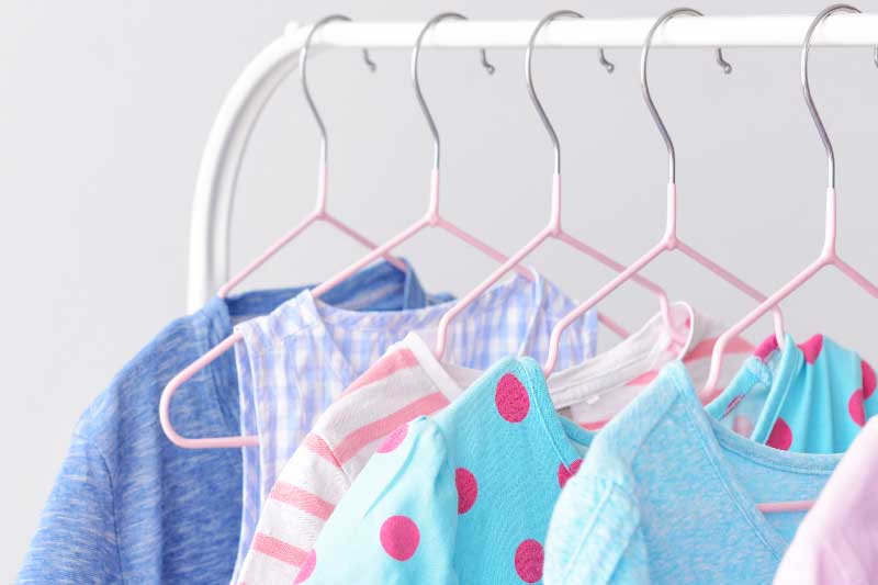 Our Children metal hangers selection are available in 10-14″ hanger size that fits most child and junior sized clothing. Not only do they help keep kids’ clothes fresh and new in appearance, but they also allow parents to organize a child’s closet and laundry room with their kids. Children are never too young to learn how to keep their things looking organized and nice.