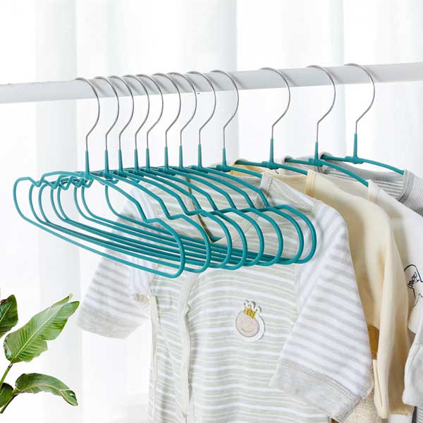 these colorful metal hangers encourage kids to join in laundry and declutter work. we have untreated wood+wire hangers, fabric rope wrapped wire hangers which makes life more joys.